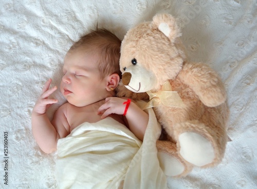 Baby girl and her teddy bear. Newborn newborn baby girl teddy